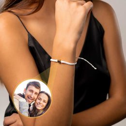 Each bracelet carries an intimate touch with your chosen picture inside. Peek within or utilize your smartphone's camera to uncover the hidden image.